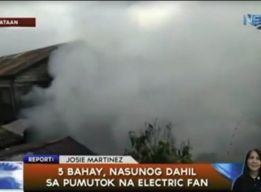 Ni Josie Martinez Eagle News Correspondent PILAR, Bataan (Eagle News) – Limang bahay ang nasunog sa Barangay Sta. Rosa, Pilar, Bataan nitong Miyerkules, Pebrero 7 bandang 3:00 ng hapon. Nagsimula diumano ang sunog sa bahay ng isang kinilalang Librada Samson ng makita ng kaniyang apo na pumutok at nagliyab ang nakasaksak nilang electric fan sa kuwarto ng kanilang bahay. Mabilis na kumalat ang apoy sa buong kabahayan at naging dahilan ng pagsunog sa ilan […]