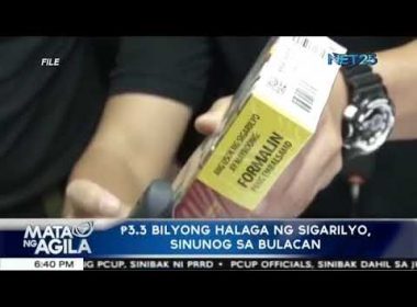MANILA, Philippines (Eagle News) — Hindi bababa sa P3.3 bilyon na halaga ng sigarilyo ng Mighty Corporation na may mga pekeng stamp ang sinunog sa Bulacan. Ang mga nasabing sigarilyo ay sinunog sa Holcim Cement Processing Plant sa Norzagaray, at sinaksihan ni Finance Secretary Carlos Dominguez III. Binigyang diin ng Finance Secretary, na ang Holcim ang napiling partner ng gobyerno sa pagsira ng mga pekeng sigarilyo, dahil ang nasabing kumpanya ang pioneer sa “geocycle” technology.