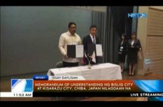 (Eagle News) — Isang kasunduan o Memorandum of Understanding ang nilagdaan sa pagitan ng lokal na pamahalaan ng Bislig City, Surigao Del Sur at ng pamahalaan ng Kisarazu City, Chiba sa bansang Japan. Nilagdaan ang nasabing kasunduan nang bumisita si Mayor Librado Navarro ng Bislig City kay Mayor Yoshikuni Watanabe ng Kisarazu City. Ang nilagdaang kasunduan ay magpapatatag sa samahan ng dalawang partido na nagnanais na mapaunlad ang kanilang nasasakupan. Nakasaad sa nasabing kaaunduan na […]