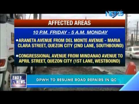 The Metropolitan Manila Development Authority has advised motorists to avoid certain areas in Quezon City as the Department of Public Works and Highways resumes its road-reblocking.