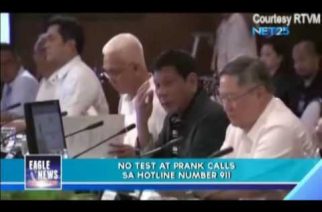 MANILA, Philippines (Eagle News) — Umapela sa publiko si Interior and Local Government Sec. Ismael “Mike” Sueno na iwasan ang test at prank calls sa hotline number 911 ang pinaka-bagong emergency hotline number. Ayon kay Sec. Sueno, nakasasagabal ang prank calls sa mga totoong gumagamit ng hotline at nangangailangan ng tulong. Nakatakda ring makipag-usap ang kalihim kay Pangulong Rodrigo Duterte ukol sa apelang ito sa publiko. Ayon naman kay DILG under-Secretary Jesus Hinlo Jr., kailangang […]
