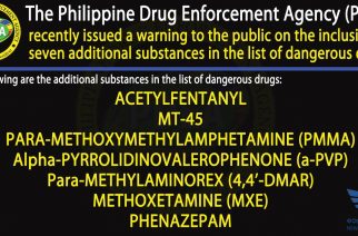 QUEZON CITY, Aug. 15 (PIA) – The Philippine Drug Enforcement Agency (PDEA) recently issued a warning to the public on the inclusion of seven additional substances in the list of dangerous drugs based on the recommendations of the United Nations Office on Drugs and Crime (UNODC), Commission on Narcotic Drugs (CND). PDEA Director General Isidro S. Lapeña cited the various decisions of the CND during its 59th Session classifying the following substances with the appropriate controls […]