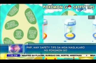 Narito ang ilang mga safety tips mula sa Philippine National Police (PNP) para sa mga nahuhumaling sa larong Pokemon Go. • Ingatan ang cellphone habang naglalakad at naghahanap ng Pokemon para hindi mabiktima ng mga snatcher sa kalsada. • Maging alerto rin sa mga iba pang bitbit na gamit tulad ng bag. • Huwag anilang mag tresspass at laging humingi ng permiso sa may ari ng lugar kung papasok para manghuli ng Pokemon. • Iwasan […]