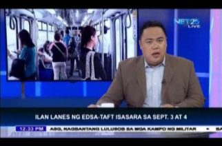 QUEZON CITY, Philippines – Several lanes in the EDSA-Taft area will be closed this weekend (September 3 – 4) in order to install four new coaches of the MRT. The innermost lane of EDSA-Taft Southbound will be closed from 8:00 PM Saturday until 3:00 AM Sunday and will again be closed from 1:00 PM Sunday until 6:00 PM on the same day. https://youtu.be/gvted6uWdDc