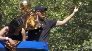 OAKLAND, California (Reuters) — Thousands of fans lined up the streets of Oakland Thursday (June 15) to celebrate the Golden State Warriors’ winning the recent National Basketball Association (NBA) title. Finals most valuable player Kevin Durant, celebrating his first NBA title, waved to fans, while point guard Steph Curry held aloft the Larry O’Brien trophy, as the vehicles filled with team and staff rolled through throngs of cheering fans.