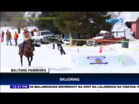 A unique sport in the United States combines skiing and horseback riding.