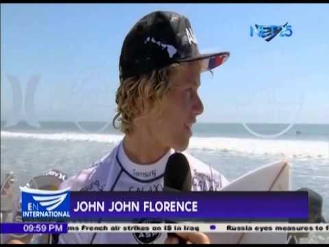 21-year old Hawaiian surfer breaks record as he advances in the quarter-finals.