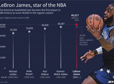 LOS ANGELES, March 3, 2024 (AFP) – LeBron James became the first NBA player to reach 40,000 career regular-season points on Saturday, the 39-year-old superstar scoring nine against defending champion Denver to achieve the milestone. But James called the historic effort “bittersweet” because it came in a losing cause as Nikola Jokic scored 35 points to rally the Nuggets late for a 124-114 victory over the Los Angeles Lakers. “Being the first player to do […]