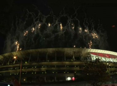 Fireworks are released at the Japan National Stadium as the Opening Ceremony for the postponed Tokyo 2020 Paralympic Games gets under way. © Agence France-Presse