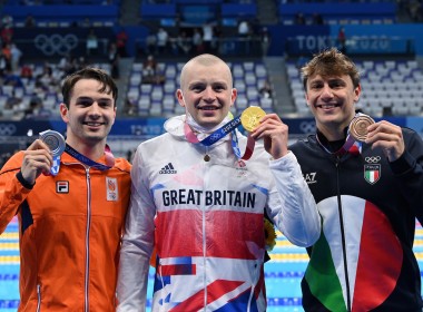 Adam Peaty became the first British swimmer to defend an Olympic title Monday when he claimed gold in the 100m breaststroke, clocking the fifth fastest time in history. The 26-year-old powered to the line in 57.37sec ahead of Dutchman Arno Kamminga (58.00), the only other swimmer besides Peaty to ever go under 58 seconds. Italy’s Nicolo Martinenghi took bronze in 58.33. Looking exhausted but ecstatic, he bowed to the stadium when he climbed out of […]