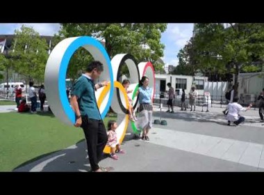 Hours ahead of the opening ceremony of the Tokyo 2020 Olympics, people take photos with the Olympic rings outside the Olympic Stadium. SOURCE: AFPTV https://youtu.be/CdC5tHJSq1E