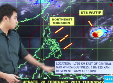 (Eagle News) — “Wutip” has intensified into a severe tropical storm as it moved closer to the Philippine Area of Responsibility. In its latest weather update, the Philippine Atmospheric Geophysical and Astronomical Services Administration said the center of “Wutip” was seen 1750 kilometers east of Central Luzon, packing maximum sustained winds of 110 kilometers per hour and gustiness of up to 135 kilometers per hour. PAGASA had said “Wutip,” which is moving west northwestward, may […]