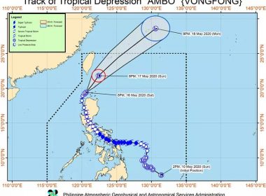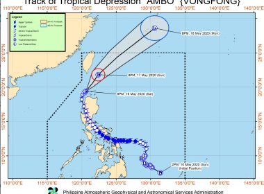 (Eagle News) — Ambo has weakened into a tropical depression and has slowed down while over the Luzon Strait, and is expected to leave the country by Monday afternoon, May 18. At 10 p.m. Saturday, May 16, the center of Tropical Depression “AMBO” was estimated based on all available data at 95 km West of Calayan, Cagayan (19.4 °N, 120.6 °E ). It is moving Northeast at 10 kilometers oer hour with maximum sustained winds […]