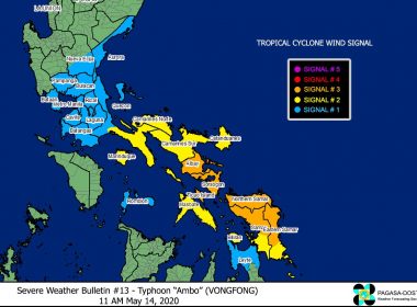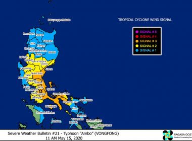 Metro Manila under Signal No. 1 (Eagle News)–Signal No. 3 has been raised over Sorsogon and other areas as Typhoon “Ambo” further intensified on Thursday, May 13, and threatens the Eastern Samar-Northern Samar area. The Philippine Atmospheric Geophysical and Astronomical Services Administration said apart from Sorsogon; the eastern section of Albay or Legazpi City, Manito, Daraga, Camalig, Jovellar, Santo Domingo, Bacacay, Rapu-Rapu; Ticao Island; Northern Samar; the northern portion of Eastern Samar or Jipapad, Arteche, […]