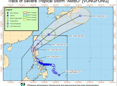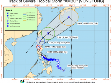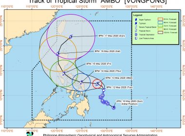 (Eagle News) — “Ambo” intensified into a tropical storm Tuesday night and is expected to “bring moderate to heavy rains over Eastern Visayas, Catanduanes, Albay, Sorsogon, and Masbate,” according to PAGASA’s 11 p.m. weather bulletin on May 12. The country’s weather bureau said that Tropical Storm Ambo (international name VONGFONG) may even “further intensify as it approaches the Eastern Visayas-Bicol Region area.” PAGASA issued a “heavy rainfall warning” last night, amd said that the […]