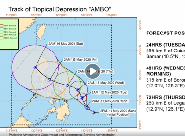 (Eagle News) — Tropical Depression “Ambo” may intensify into a tropical storm on Thursday, May 14, the Philippine Atmospheric Geophysical and Astronomical Services Administration said. According to PAGASA’s Ariel Rojas, if Ambo’s northwest direction continues, by then, it will be located 260 kilometers east of Legazpi City and may make landfall in the Bicol area. PAGASA said as of 3 a.m. today, “Ambo” is located 385 kilometers east of Hinatuan, Surigao del Sur, packing maximum […]
