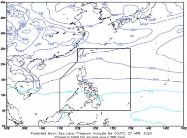 Extreme N. Luzon affected by northeasterly surface windflow (Eagle News)–The easterlies will bring cloudy skies with isolated rainshowers to Bicol and Northern Samar. The Philippine Atmospheric Geophysical and Astronomical Services Administration said the partly cloudy to cloudy skies with isolated rainshowers or thunderstorms are also expected over Oriental Mindoro, Marinduque and Romblon. Light to moderate winds will prevail also in Visayas, Palawan and Occidental Mindoro, which will have slight to moderate seas, PAGASA said. PAGASA said […]