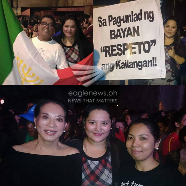 Former President of PNPA Tingting Conjuangco shows support in the protest of INC members against De Lima’s implementation of selective justice and disproportionate action to INC cases. #EagleNews Contributors: Michelle Mae Mata, Lloyd delos Reyes #1with25