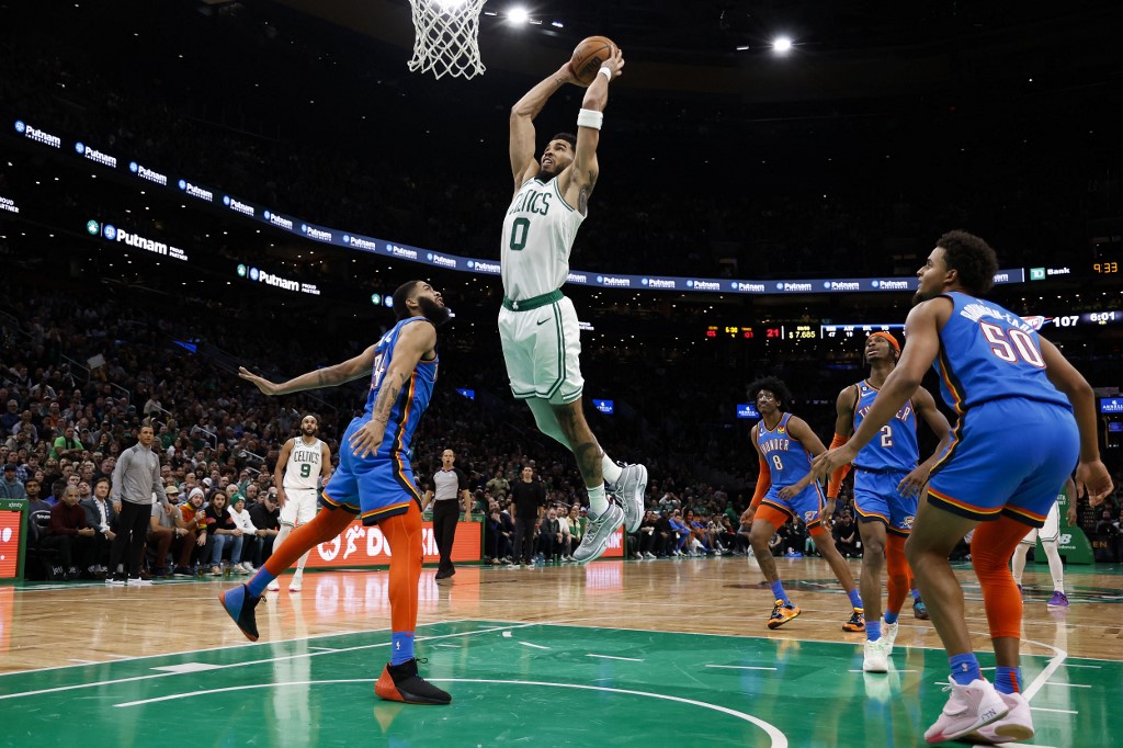 The Celtics, down by seven at halftime and after three quarters, outscored Oklahoma City 37-26 in the fourth quarter to rally for the victory, with Derrick White coming off the bench to score 16 points.