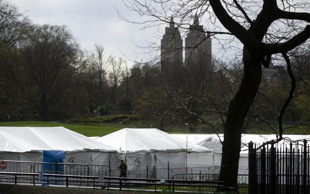 Most surreal is the sight of a 12-tent, 68-bed field hospital on a small section of lush lawn on the park’s eastern border, set up to treat coronavirus patients from nearby hospitals.