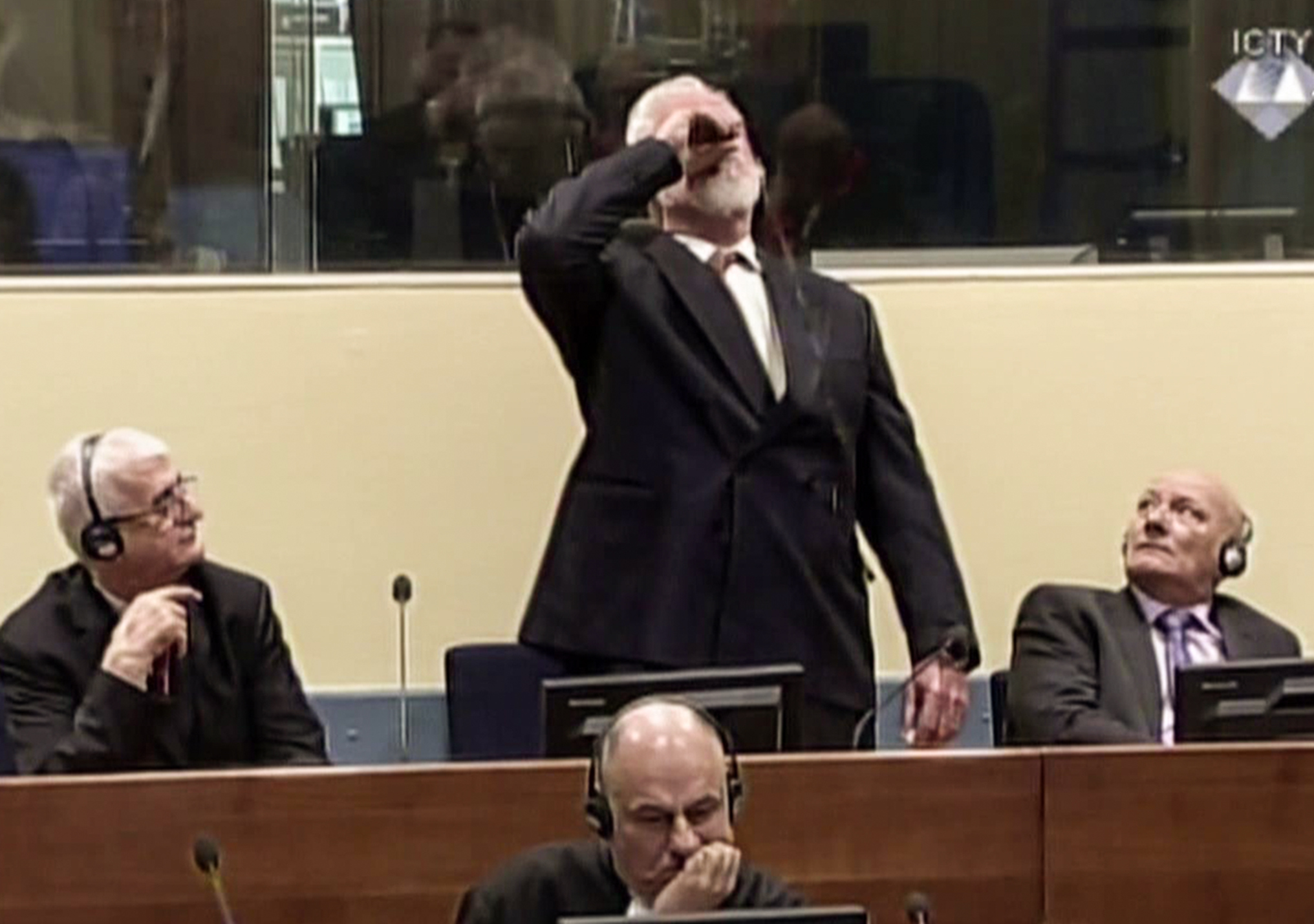 The unprecedented scenes came just after the judges also upheld a 25-year prison term against Jadranko Prlic, the former prime minister of a breakaway Bosnian Croat statelet, and a 20-year term for its former defense minister Bruno Stojic.