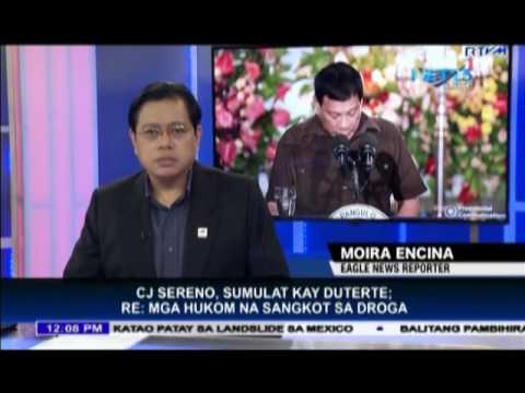 Chief Justice Sereno sends a letter to President Duterte regarding judges allegedly involved in illegal drug trade