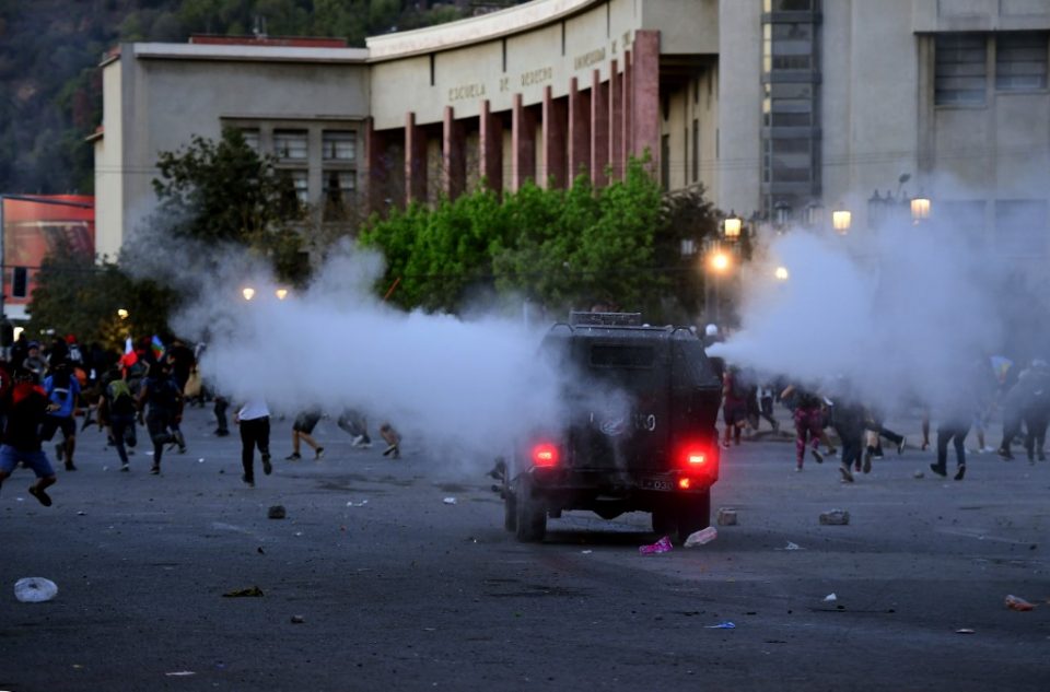 Hundreds of other protesters marched along Santiago’s main avenue to the presidential palace, where they clashed with police, who fired tear gas and water trucks.