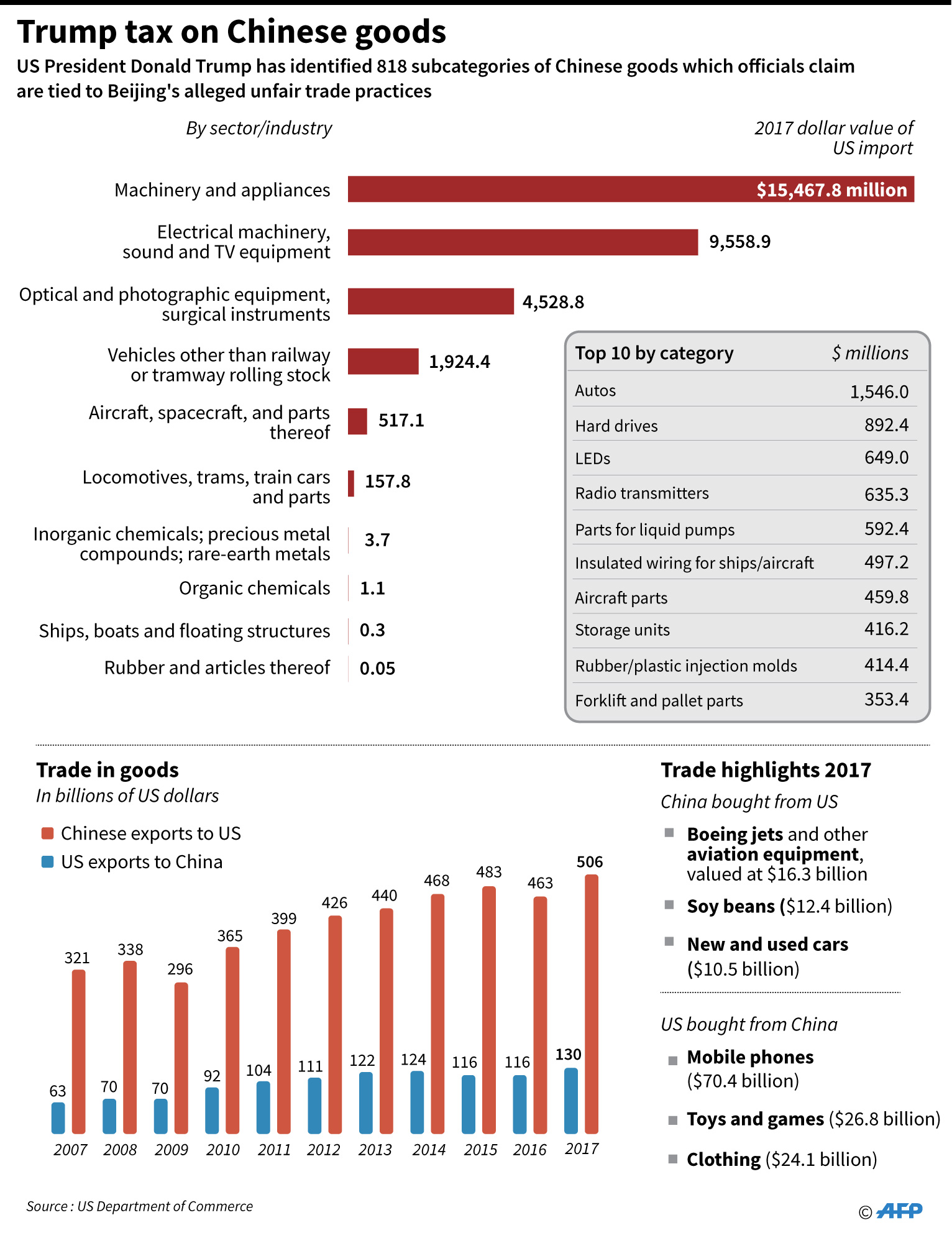 The new tariffs could just be the opening skirmish in the trade war, as US President Donald Trump has vowed to hit as much as $450 billion in Chinese goods, the vast majority of that country’s imports.