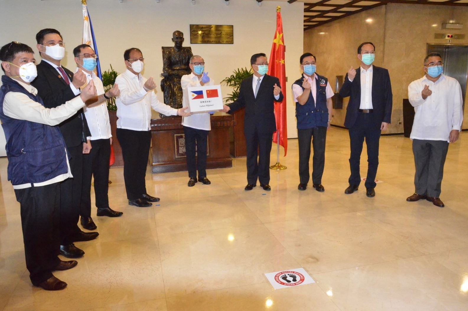 Foreign Affairs Secretary Teodoro L. Locsin, Jr. and Chief Implementer of the National Plan Against COVID-19 Secretary Carlito Galvez, Jr. received from Chinese Ambassador Huang Xilian the Chinese Government’s additional donation of 150,000 testing kits and 18,000 disposable overalls on Sunday, May 10.