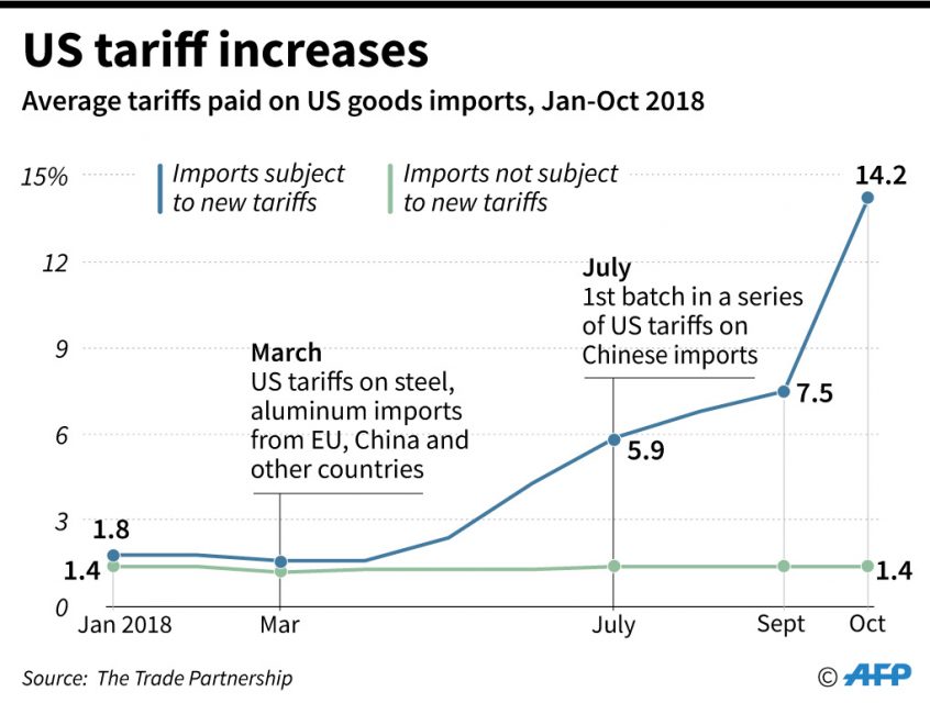 In a previous round of tit-for-tat moves, the US imposed 10 percent tariffs on $200 billion worth of Chinese imports in September.