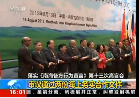 State broadcaster CCTV said the meeting reviewed and passed two documents of pragmatic maritime cooperation, including a joint statement from China and ASEAN countries on the application of the Code for Unplanned Encounters at Sea (CUES).