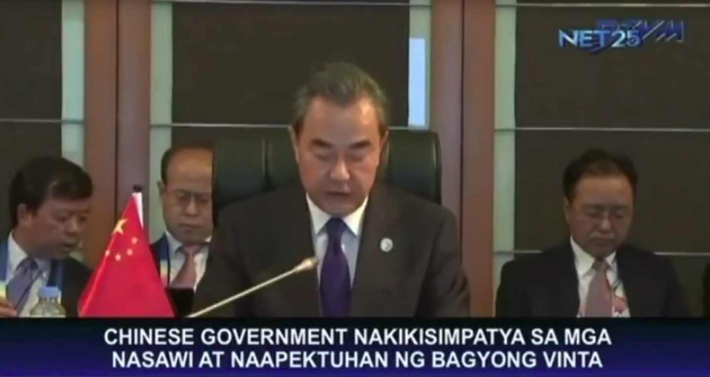 Ayon kay Foreign Minister Wang Yi, naniniwala ang Tsina na sa ilalim ng kasalukuyang gobyerno ng Pilipinas ay malalampasan ng mga Pilipino ang kalamidad at maibabalik sa normal ang kanilang pamumuhay sa lalong madaling panahon.