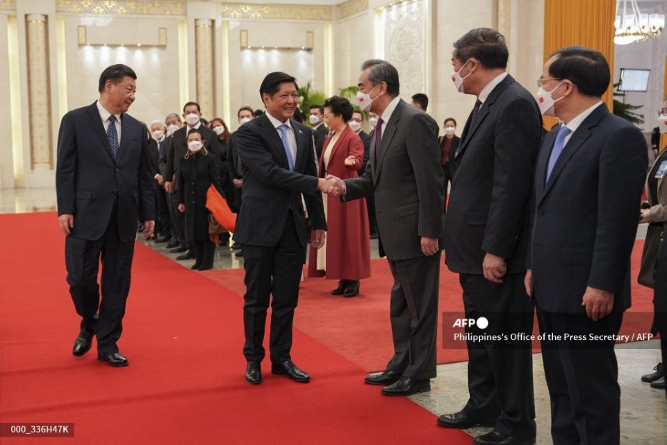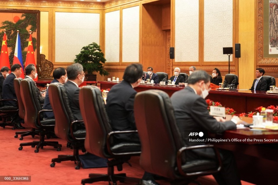 This handout photograph released by the Philippine’s Office of the Press Secretary and taken on January 4, 2023 shows Philippine President Ferdinand Marcos Jr (R) during a bilateral meeting with China’s President Xi Jinping (L) at the Great Hall of People in Beijing. (Photo by Handout / Philippines’s Office of the Press Secretary / AFP)