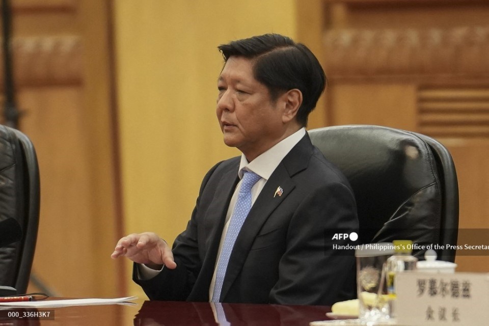 This handout photograph released by the Philippine’s Office of the Press Secretary and taken on January 4, 2023 shows Philippine President Ferdinand Marcos Jr during a bilateral meeting with China’s President Xi Jinping at the Great Hall of People in Beijing. (Photo by Handout / Philippines’s Office of the Press Secretary / AFP)