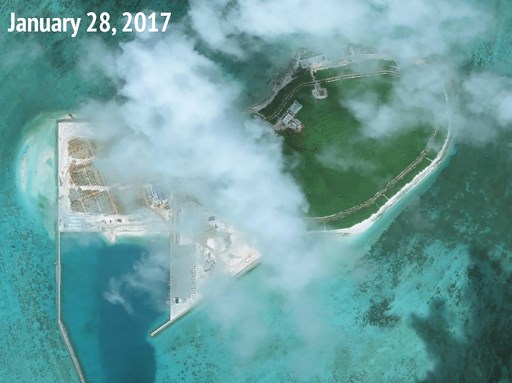 China is expanding artificial islands in disputed South China Sea areas despite saying it stopped two years ago, according to a security think tank that released satellite images it said showed the land reclamation. Beijing claims most of the sea and has been turning reefs in the Spratly and Paracel chains into islands, installing military aircraft and missile systems on them — an activity the Asia Maritime Transparency Initiative (AMTI) said was continuing. / AFP PHOTO / CSIS / DigitalGlobe / —–EDITORS NOTE — RESTRICTED TO EDITORIAL USE – MANDATORY CREDIT “AFP PHOTO / CSIS Asia Maritime Transparency Initiative / DigitalGlobe” –