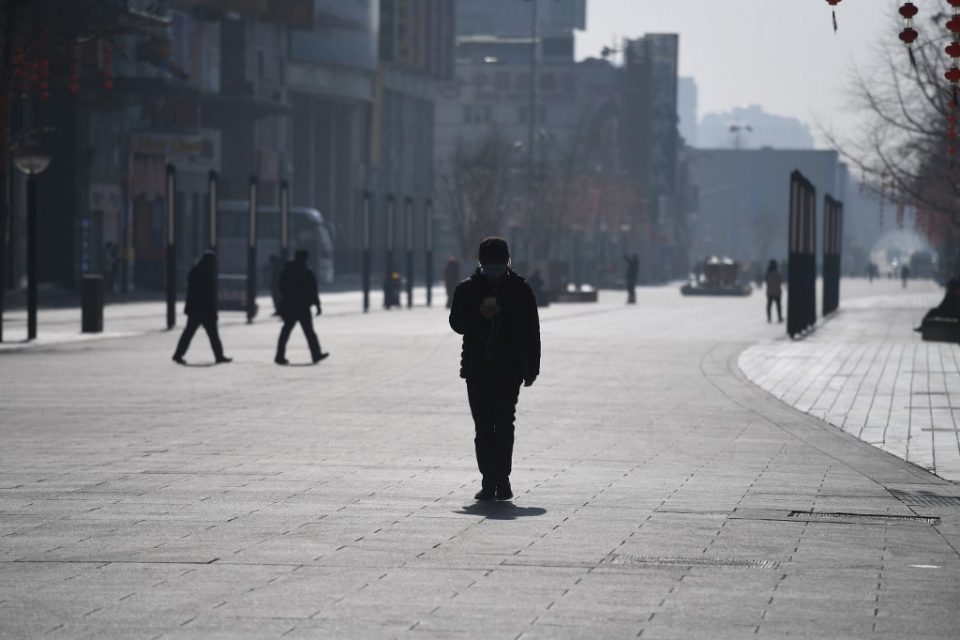 A man wears a protective face mask as he walks in the normally bustling Wangfujing shopping street in central Beijing on February 10, 2020. – As the novel coronavirus virus claims more lives and infects thousands of people every day, it is also taking a toll on the country’s small businesses that rely on spending from China’s growing middle-class. (Photo by GREG BAKER / AFP)