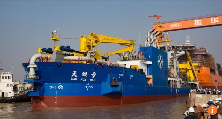 It is a larger version of the one China used to dredge sand, mud and coral for transforming reefs and islets in the South China Sea into artificial islands capable of hosting military installations.