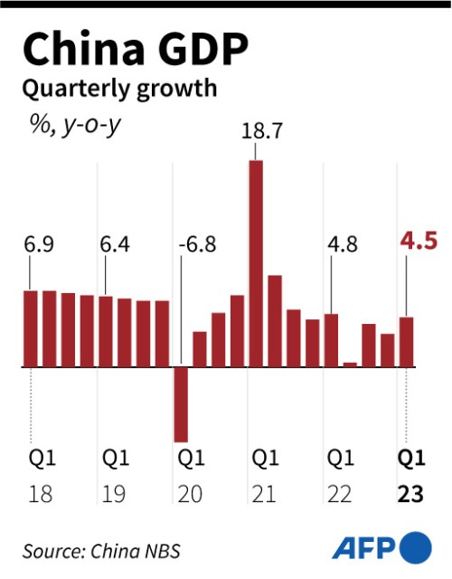 According to data published by the National Bureau of Statistics (NBS), the official growth figure for January to March was 4.5 percent — significantly higher than the 3.8 percent predicted by analysts in an AFP poll.