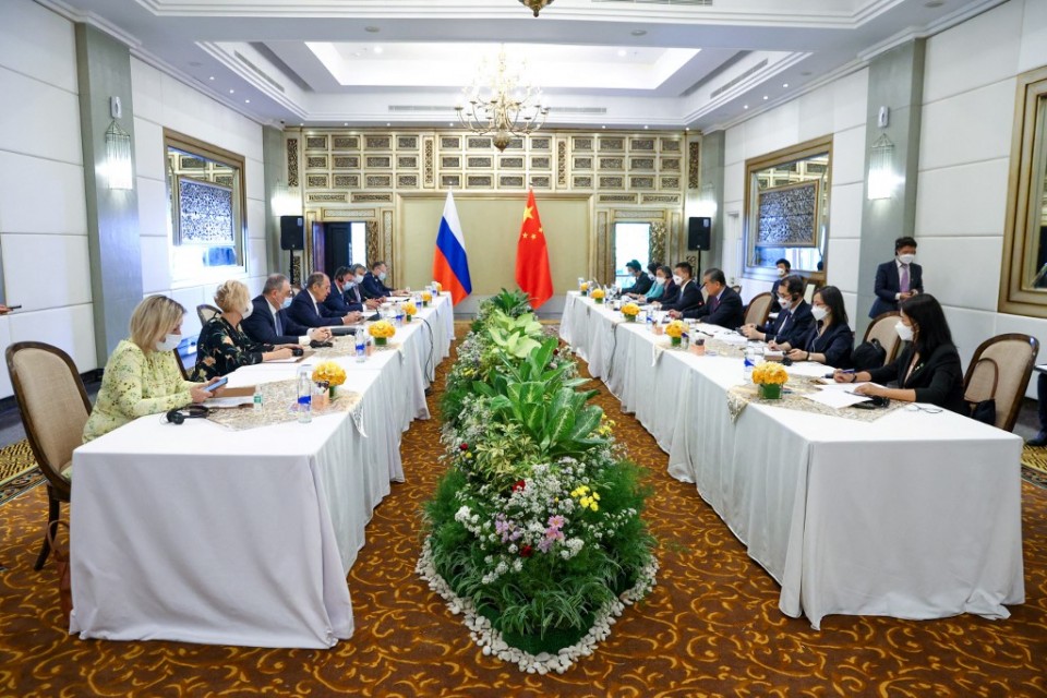 Russian Foreign Minister Sergei Lavrov meets with his Chinese counterpart Wang Yi in Denpasar on July 7, 2022. (Photo by Handout / RUSSIAN FOREIGN MINISTRY / AFP) / RESTRICTED TO EDITORIAL USE – MANDATORY CREDIT “AFP PHOTO / Russian Foreign Ministry / handout” – NO MARKETING NO ADVERTISING CAMPAIGNS – DISTRIBUTED AS A SERVICE TO CLIENTS
