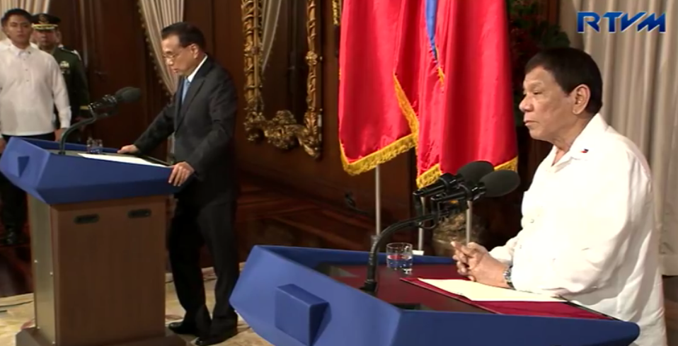 He said he was “very much eager to sit down and discuss with Premier Li how we can further advance Philippine-China relations to a functional cooperation in key areas such as trade, agriculture, education, science and technology, and people to people exchanges.”