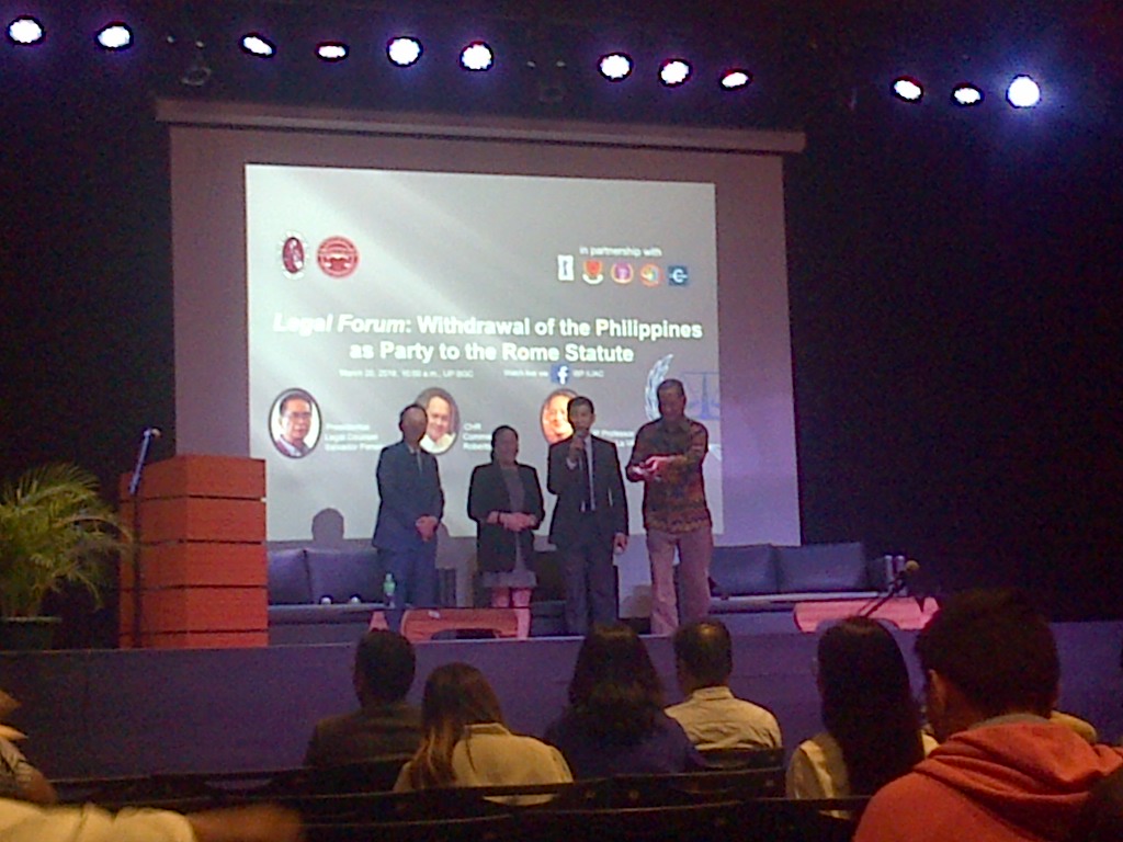 “Since the withdrawal takes effect one year hence, and since the Court has already started its process of preliminary examination, it’s too late in the day to invoke lack of jurisdiction of the ICC over the so-called extrajudicial killings,” he told the participants in the IBP and UP College of Law sponsored Legal Forum on the country’s withdrawal as party to the Rome Statute at the University of the Philippines campus in Bonifacio Global City in Taguig City.