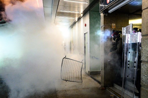 In the shopping area of Causeway Bay, officers fired tear gas outside another subway station.