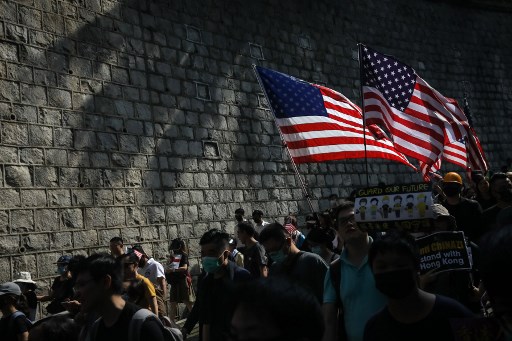HONG KONG, China (AFP) — Pro-democracy activists jammed Hong Kong streets in a march to the United States consulate on Sunday in a bid to ramp up international pressure on Beijing, but hardcore protesters later clashed with riot police across the city’s core.