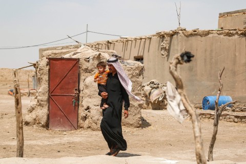 “It’s a skin disease, the ‘Baghdad boil’,” Najeh Farhan said of the pustule on Tiba’s mouth as the toddler played with a pacifier at their home in the drought-hit province of Al-Diwaniyah.