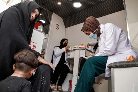 Raghda Ihsane, a pharmacist, listed the most common cases the team was treating: “Intestinal infections, dermatological diseases, skin rashes resulting from poor water quality, inflamed urinary tracts.”