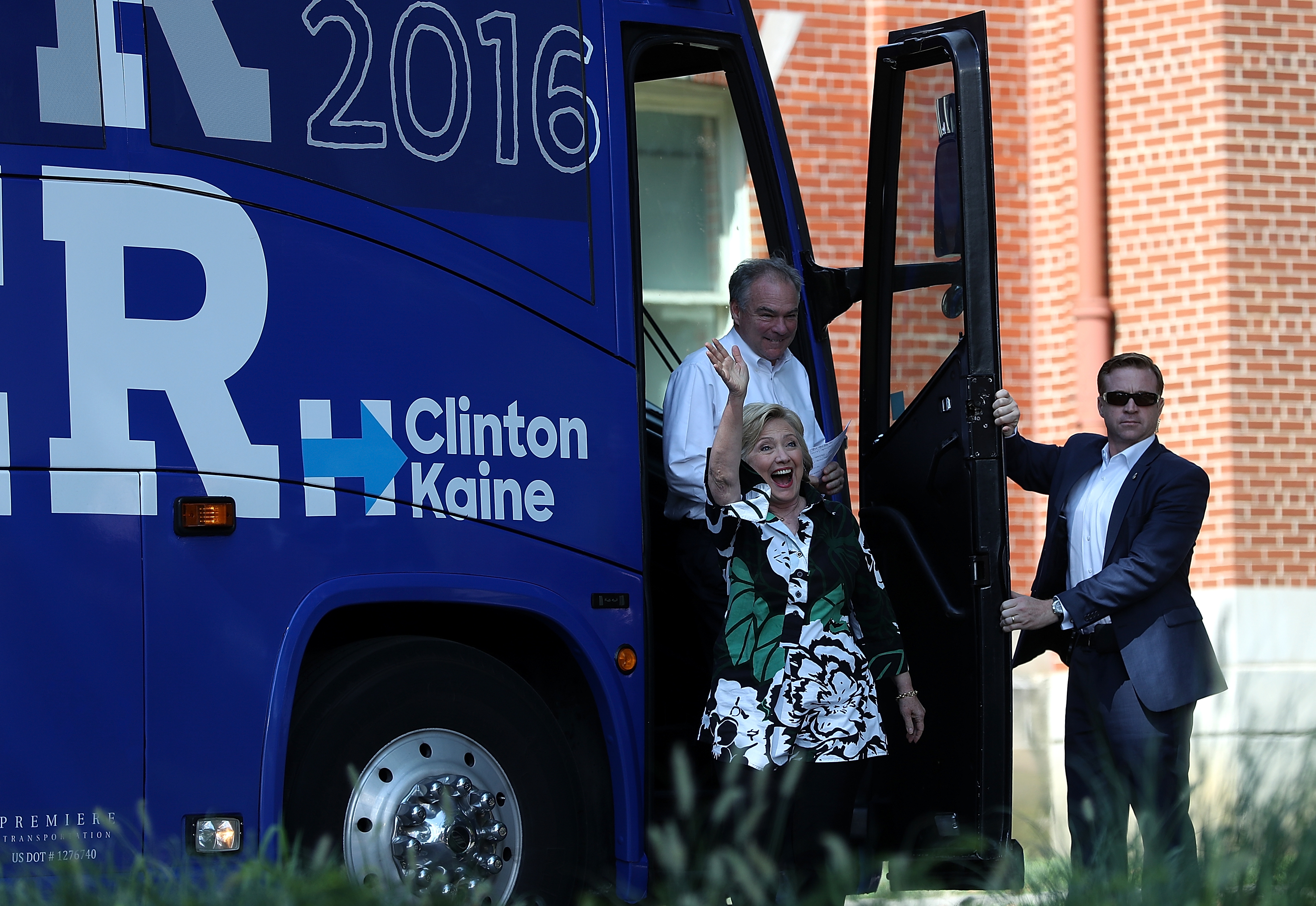 With her husband ex-president Bill Clinton in tow, the former first lady, top diplomat, ex-senator and now Democratic presidential candidate took her seat on a blue bus that meandered over 1,000 kilometers (600 miles) from Philadelphia to Columbus, Ohio.