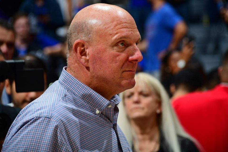 Steve Ballmer of the LA Clippers looks on after the game against the Atlanta Hawks on November 16, 2019, at State Farm Arena in Atlanta, Georgia. Copyright 2019 NBAE Scott Cunningham/NBAE via Getty Images/AFP