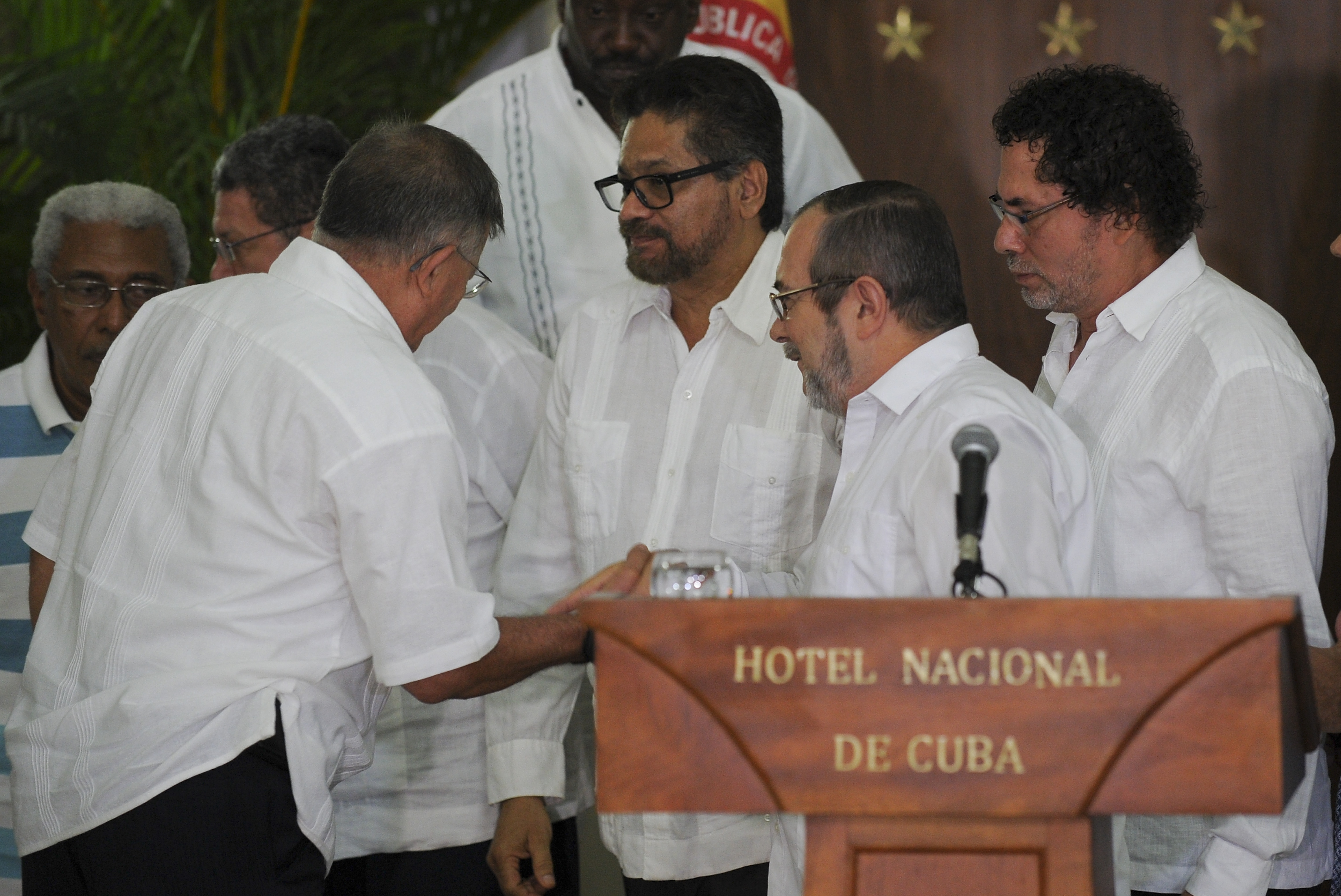 Colombia’s FARC rebel force ordered a definitive ceasefire late Sunday as part of an accord to end 52 years of conflict with the government. / AFP PHOTO /