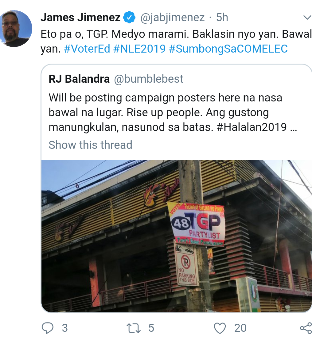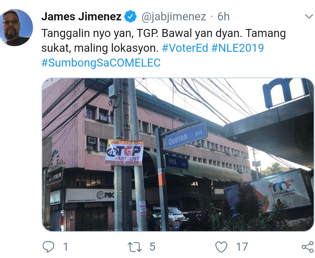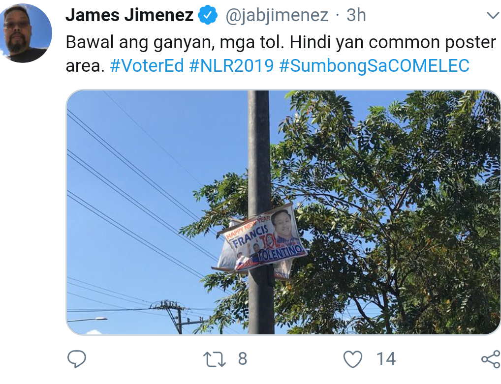 Comelec spokesperson James Jimenez called the attention of the candidates in a series of tweets posted on the same day the campaign period for those bets kicked off.