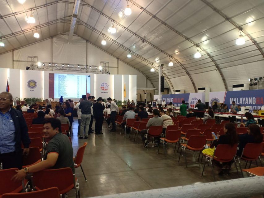 The site of the official canvassing of votes where the Commission on Elections (Comelec) sitting as the National Board of Canvassers do its national canvass of votes for senatorial bets and party-list groups. (Photo courtesy Earlo Bringas, Eagle News Service)
